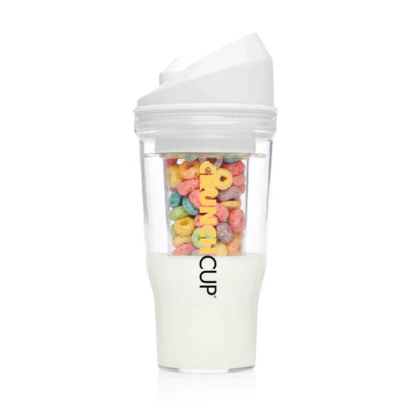 Ditch the spoon and bowl and take your cereal on-the-go with The CrunchCup®. Whether you're sitting on the couch, at your desk, or on the move, you can enjoy your cereal anywhere with this dual-chambered, reusable, dishwasher-safe tumbler made of durable, BPA-free plastic.